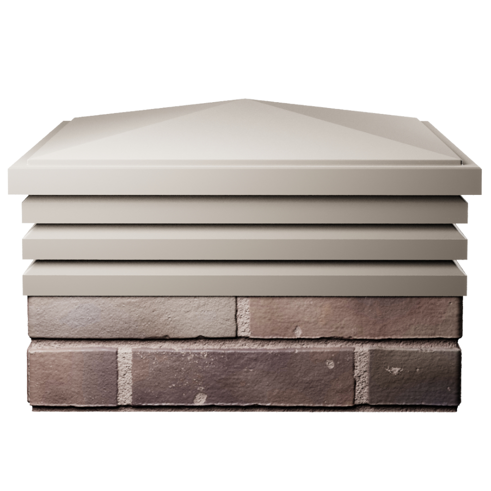 Колпак-жалюзи Zking Бона ХайТек 513х513мм Бежевый на столб 2х2 кирпича отлично сочетается с заборами жалюзи, заборами ранчо из металлопланкена, ДПК, современными домами в стиле хайтек.