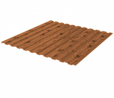 Маркировка «С» обозначает, что профлист предназначен для возведения стен, цифра 8 — это высота профиля 8 мм, число 1150 — рабочая ширина листа в мм. Производится из рулонной стали оцинкованной с полимерным покрытием под дерево Кедр Темный 0.45мм SteelArt (Россия).