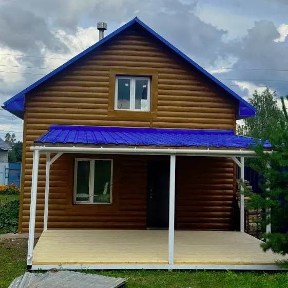 Сайдинг металлический Блок-Хаус под бревно дерево Кедр 3D Темный SteelArt фото Центр Металлокровли Фото сайдинга металлического (металлосайдинга) Блок-Хаус под бревно SteelArt Кедр Темный для фасада дома